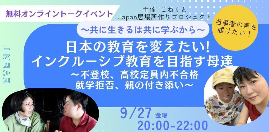 【9/27開催】〜共に生きるは共に学ぶから〜インクルーシブ教育を目指す母達 オンライン講演会