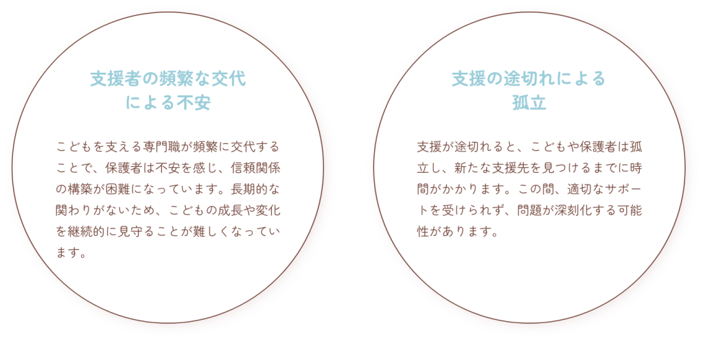 継続的なフォローアップにより、支援の途切れを防ぎ、こどもや保護者の孤立を防止します。