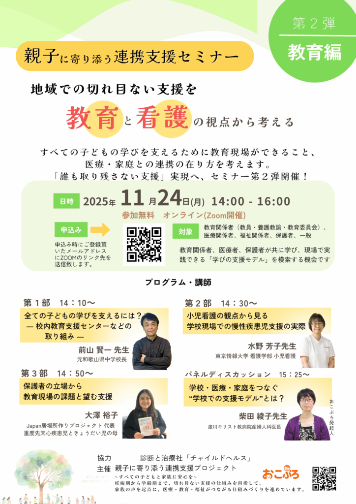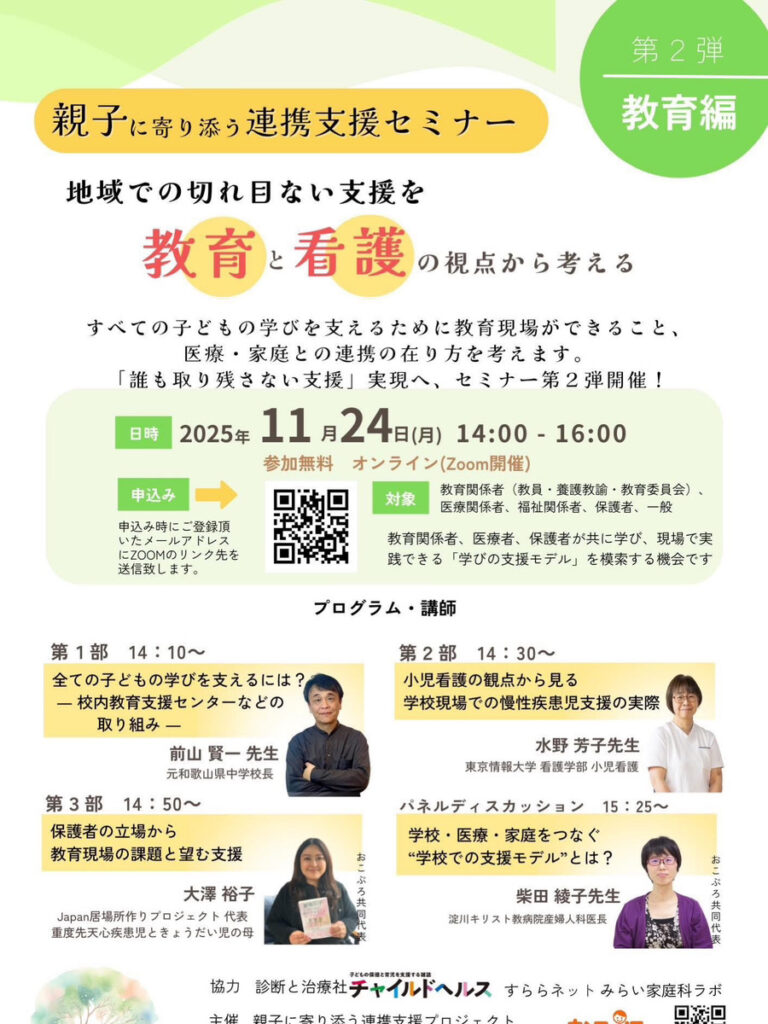 病気や障がいがあるこどももみんなが安心して成長する社会に向けて当事者、専門家の知見から提言を行う予定です。